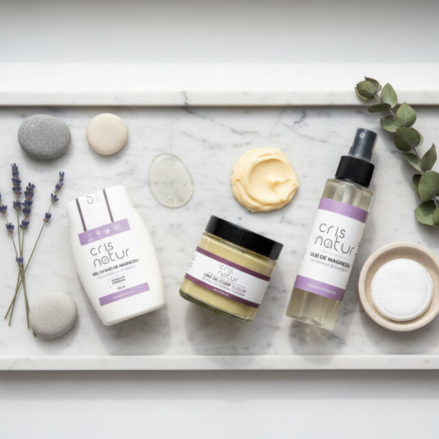 Te invitam sa incerci produsele noastre naturale: Uleiurile de magneziu simple, Ulei de magneziu cu lavanda, Ulei de magneziu cu menta, Ulei de magneziu cu portocala si Ulei de magneziu cu lamaie, Gelurile cu ulei de magneziu Zechstei si Lotiunile de corp cu ulei de magneziu Zechstein.