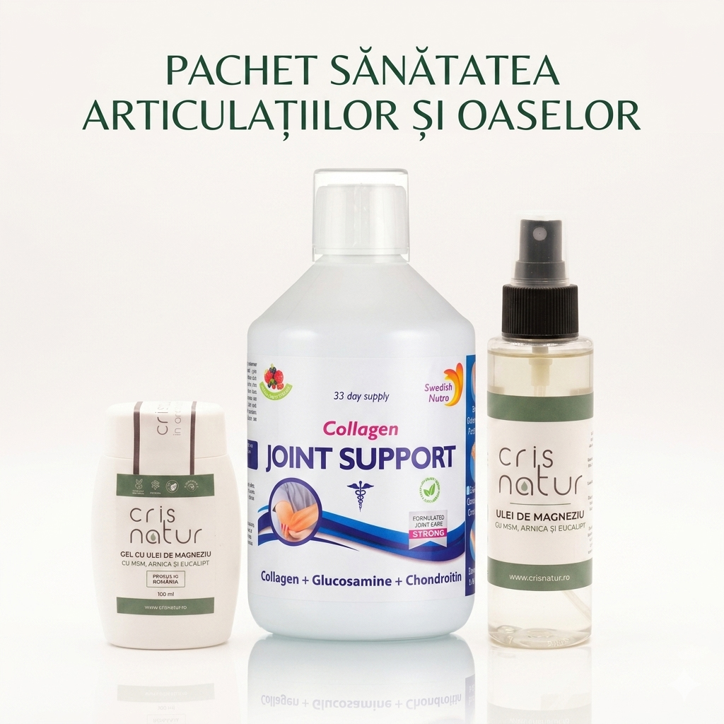 Pachet Gel si Ulei de Magneziu cu MSM, Arnica si Eucalipt 100% natural, realizat manual in laboratorul nostru + Colagen Joint Support