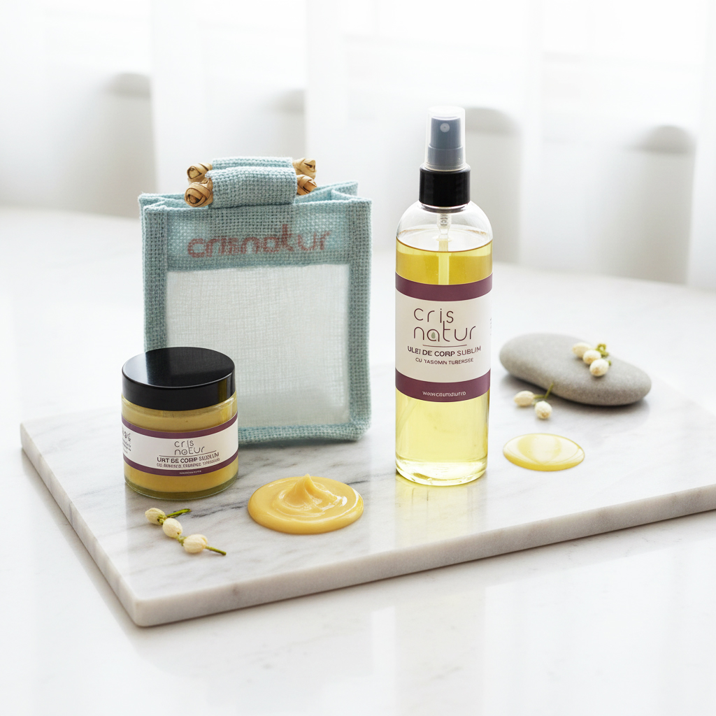 Set ingrijire corp: Unt+Ulei de corp natural 100% SUBLIM cu Ghee si Yassmin Tubérose