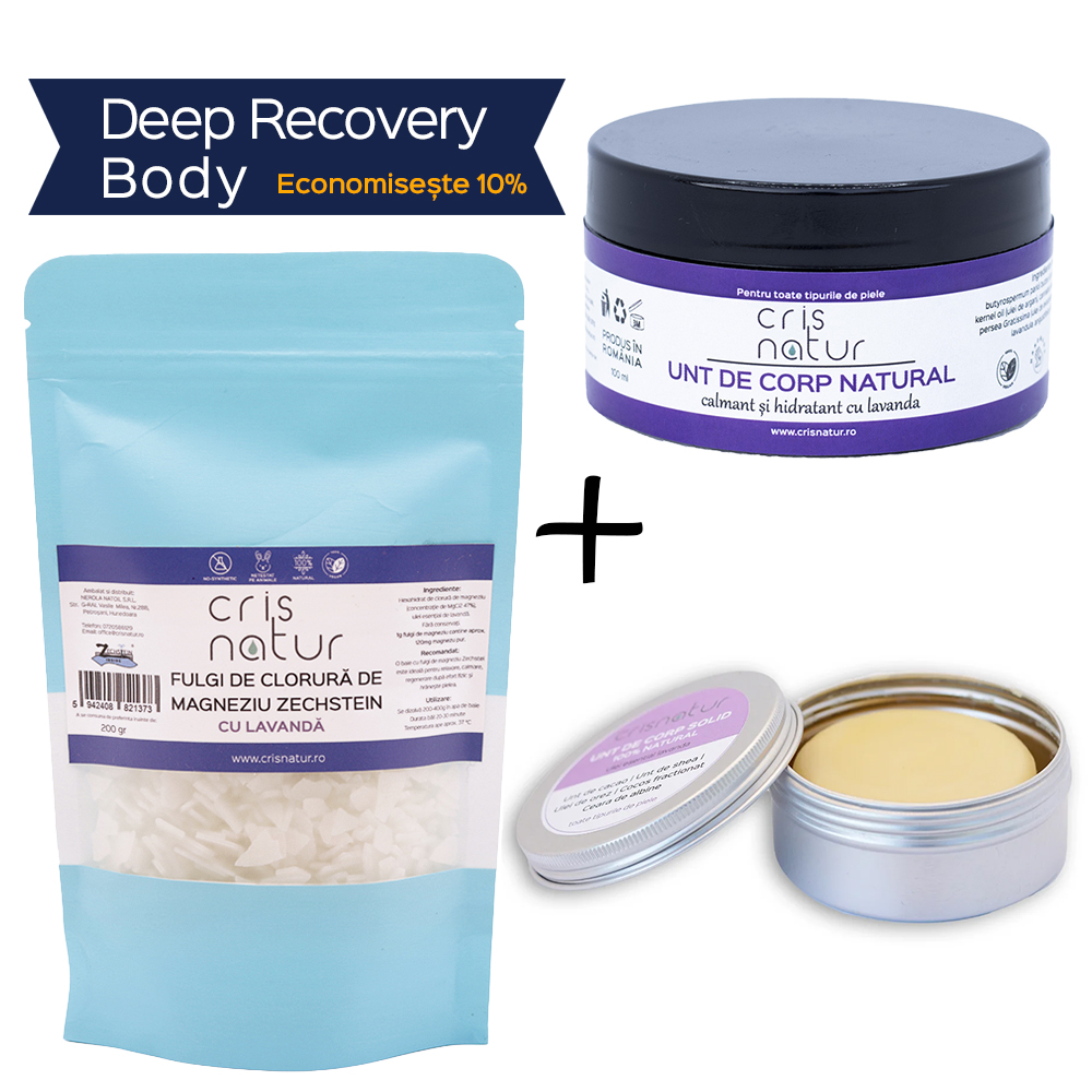 Redă-i corpului tău vitalitatea pierdută cu un ritual terapeutic conceput să acționeze în profunzime. Setul Deep Recovery Body nu este doar un pachet cosmetic, ci un sistem de refacere biologică ce combină puritatea magneziului antic cu bogăția unturilor botanice artizanale.