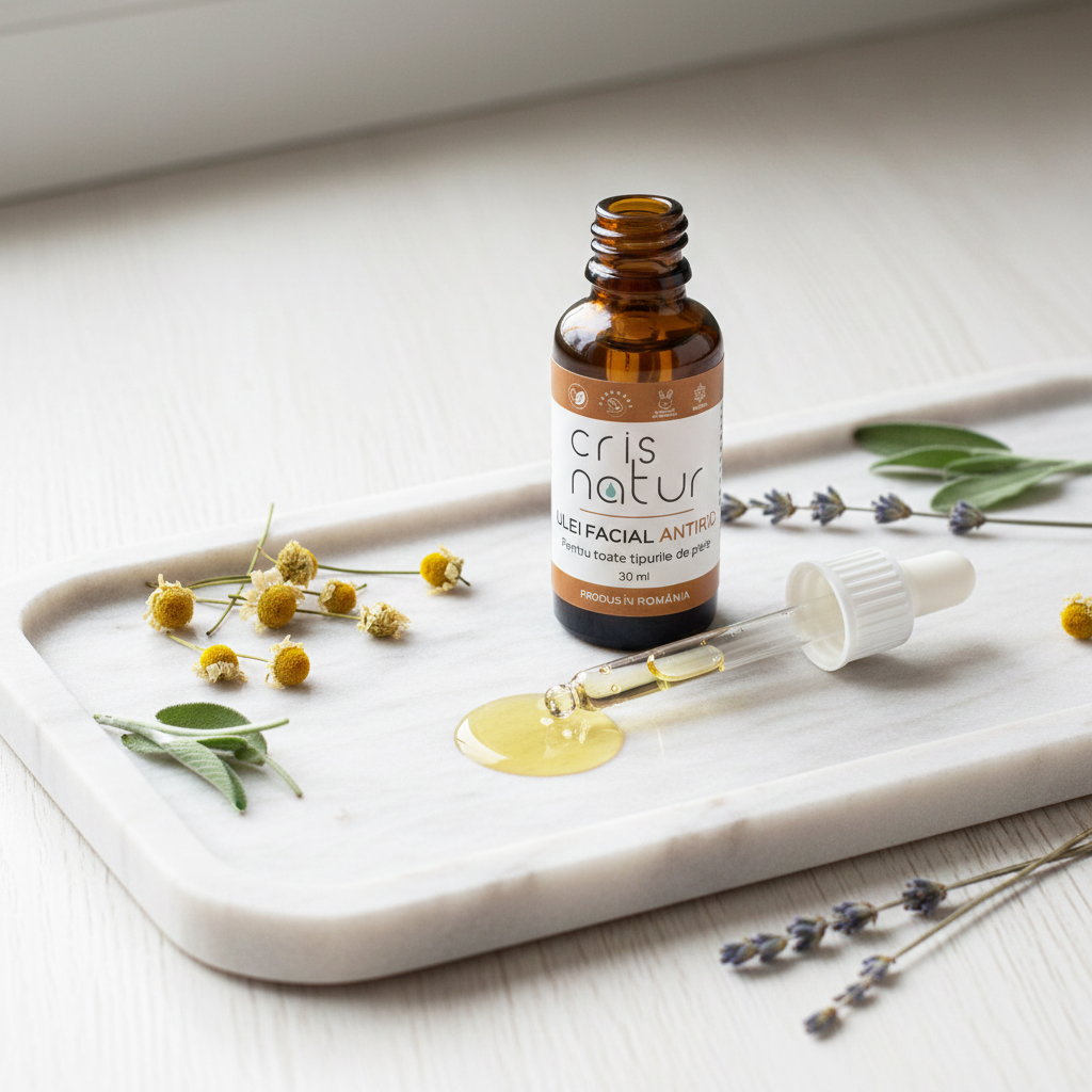 Ulei facial Antirid 100% natural realizat manual in Romania, doar 5 ingrediente